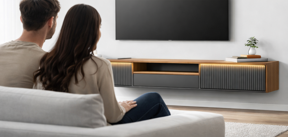 میز LCD دیواری مدل فلوت از برند REY DESIGN، انتخابی ایدهآل برای فضاهای مدرن و مینیمال است. طراحی خاص دربهای شیاردار عمودی در کنار نور مخفی گرم، جلوهای لوکس و چشمنواز به فضای نشیمن شما میبخشد.این میز بهصورت دیوارکوب (شناور) نصب میشود و با حذف پایهها، باعث بزرگتر دیده شدن فضا و نظم بیشتر محیط میگردد. ترکیب متریال باکیفیت، طراحی دقیق و کاربردی بودن، مدل فلوت را به گزینهای مناسب برای خانههای امروزی تبدیل کرده است.فضای داخلی مناسب برای قرارگیری دستگاههای صوتی و تصویری، مدیریت کابلها و استفاده از اکسسوریهای دکوری، از دیگر مزایای این میز LCD دیواری است